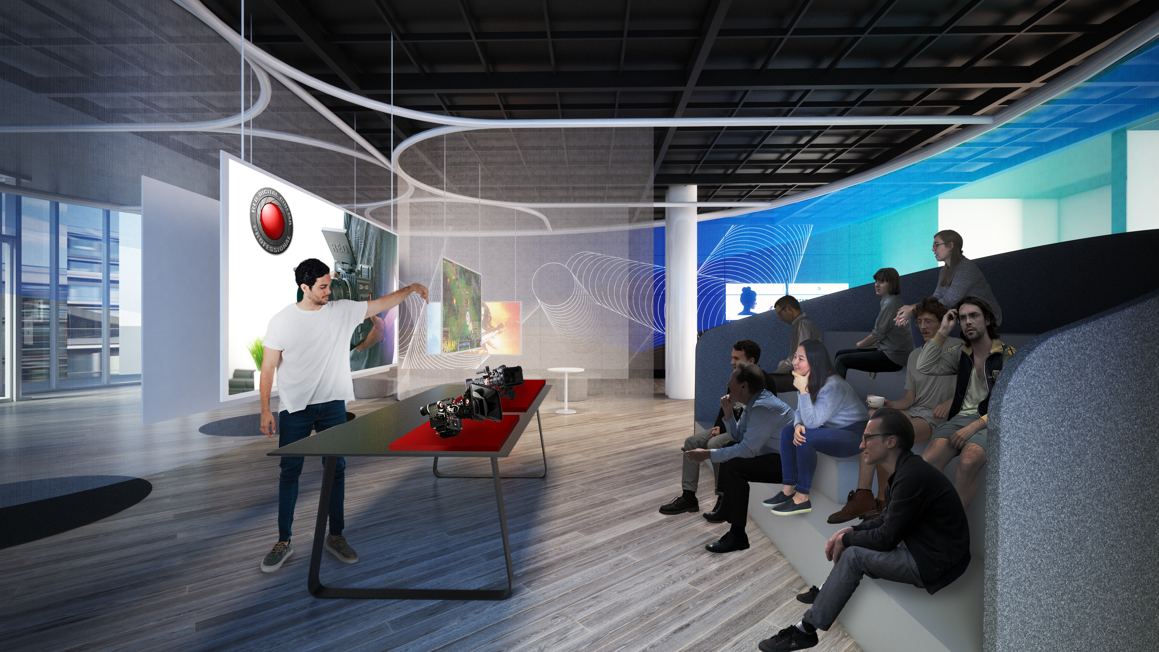 The customer journey was designed around the interactions with those experiences, and visualized to the client as a day in the life, where a number of vignettes play out as the space transforms during the day.